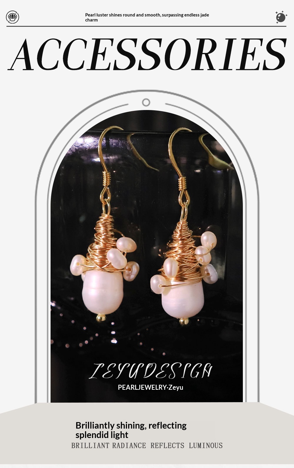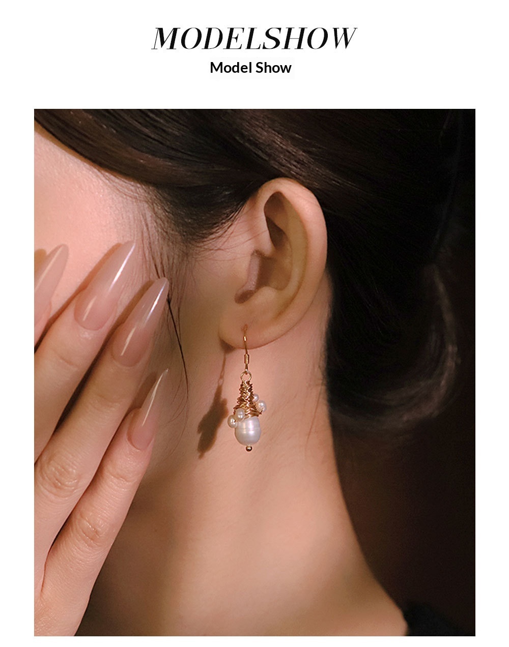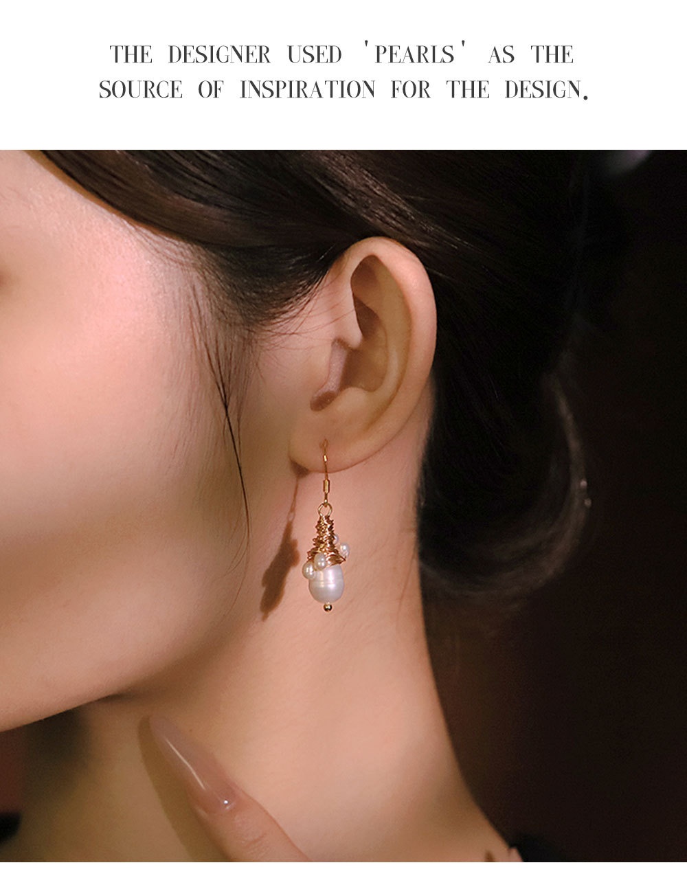 Natural Pearl Embellished Wire-wrapped Earrings Fresh And Sweet